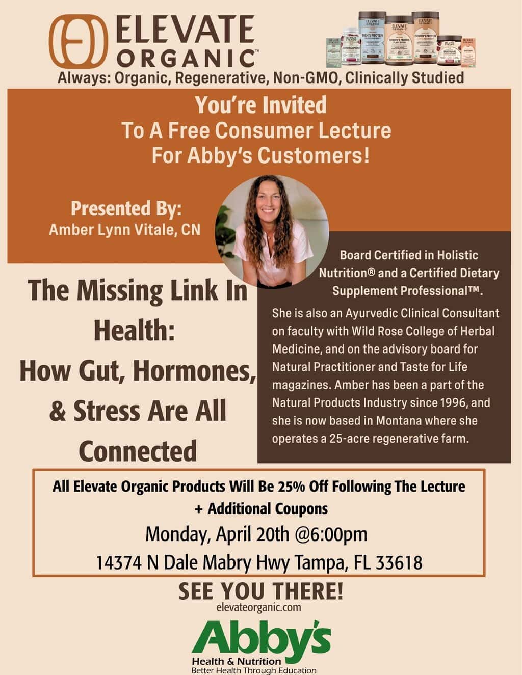Free Lecture: Elevate Organic – The Missing Link In Health: How Gut, Hormones, & Stress Are All Connected