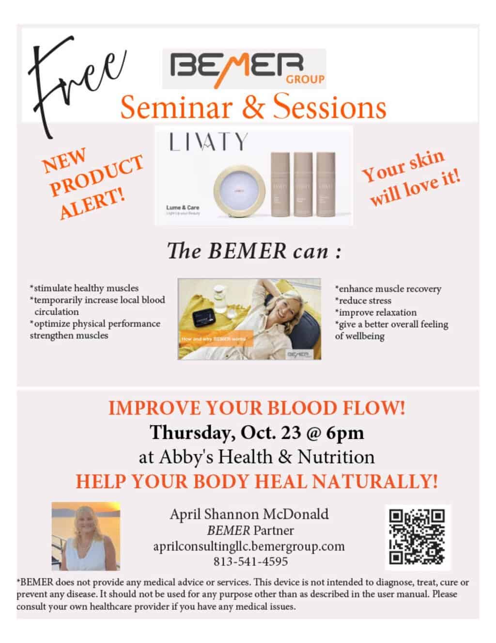 Join April Shannon McDonald, she is part of the Bemer Group, on October 23 @ 6pm.